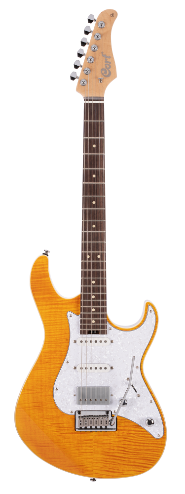 A G300 Pro az ikonikus G-széria legújabb, legmagasabb minőséget képviselő modellje. Benne van minden, amit a Cort nyújtani tud a kiváló játszhatóság, a hangzásbeli sokoldalúság és az esztétikus dizájn terén. Ezekben segít az amerikai hársfa test 6mm-es juhar tetővel, az égetett juhar nyak, a fluoreszkálós pontozás, a rozsdamentes acél bundok, valamint a két Seymour Duncan® humbucker, melyeket egy ötállású pickup kapcsoló szabályoz. Emellett a G-szériában először, a G300 Pro már 24 bunddal kapható.