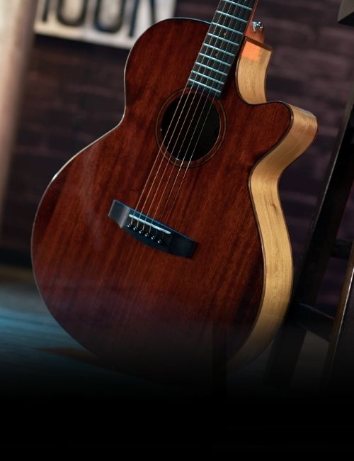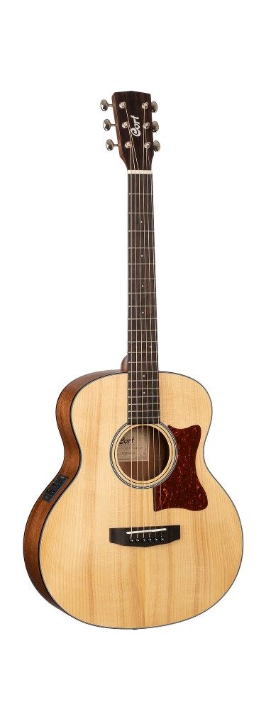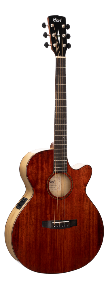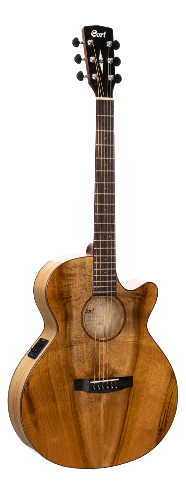 As Cort’s vision of the modern acoustic-electric, the SFX Series features Cort’s own unique slim body shape (83-83mm) with comfortable cutaway, modern V-shape neck profile and jumbo frets for enhanced playability, arched back for improved resonance, and Fishman electronics. The use of exotic wood Myrtlewood gives SFX Myrtlewood a unique look that stands out from rest of the series while enabling it to produce the bright and clear sound with clear sound projection.